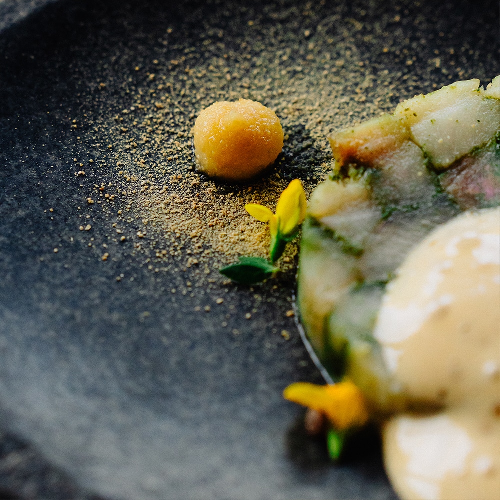 Une gastronomie à la fois instinctive et envoûtante, où l’acidité danse avec légèreté, où la salinité, discrète et précise, éclaire les saveurs, et où l’amer noble, en contrepoint, dévoile la richesse et la complexité de chaque assiette.